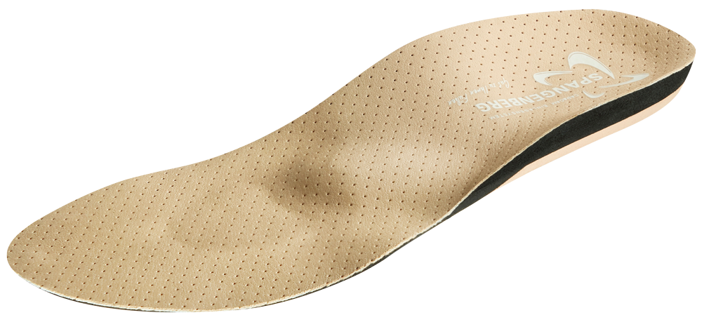 Unsere Kork-Leder Einlage mit langer dünner Sohle. Ohne Übergänge wird der Fuß von der Einlage getragen. Platzsparend aus natürlichen Rohstoffen kann sie auch mit Polster gefertigt werden.